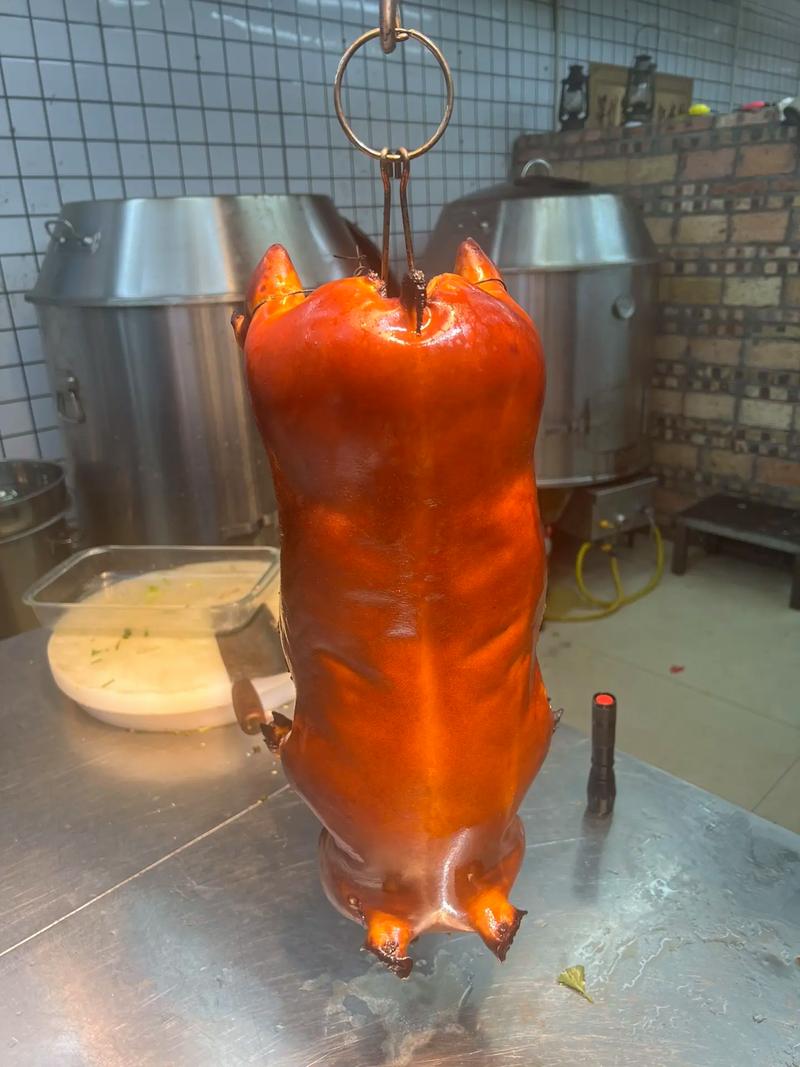 独创 “一猪三吃”:猪皮蘸白糖、猪肉配酸梅酱、猪骨煲萝卜汤。烤大猪的肠头部分采用 “九曲回肠” 技法,每根肠子需翻转 9 次烤制,形成外焦内糯的独特口感。